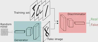 $$ \frac{1}{n}\sum_{i=1}^n\bigg[log(D(x^{(i)}))+ log(1-D(G(z^{(i)})))\bigg] . $$The discriminator is trained to maximize the average of the log probability for real data and the log of the inverted probabilities of fake data. The generator seeks to minimise the following expression: